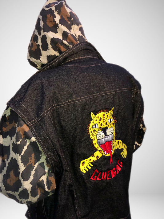 Leopard Strike Hooded Corduroy and Denim Jacket